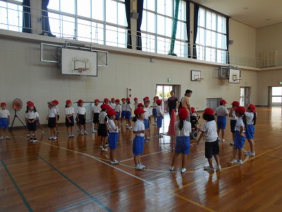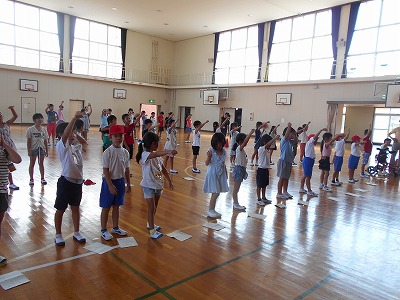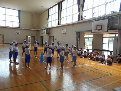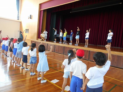 応援の練習も始まりました。応援団のお兄さん、お姉さんのまねをして