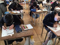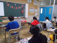 外国語の授業では、クリスマスバージョンとしてクリスマスにちなんだ内容を行いました。クリスマスの歌を歌ったり、メッセージカードなどをつくったりしました。楽しく活動することができました。