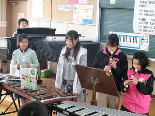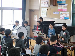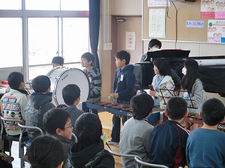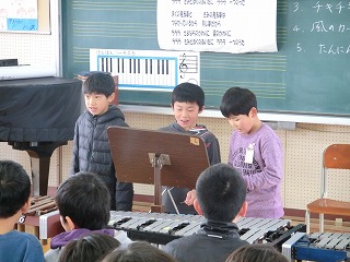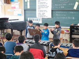 3月14日(火)の1・2時間目に1組・2組合同で音楽の授業でアンサンブル発表会を行いました。