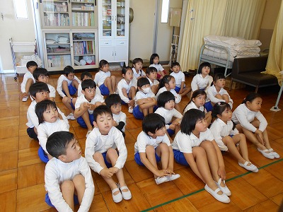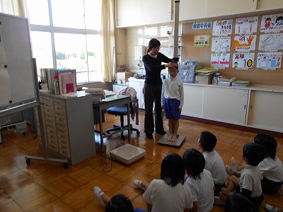 身体測定のため、体操服に着替えて保健室へ行きました。