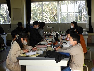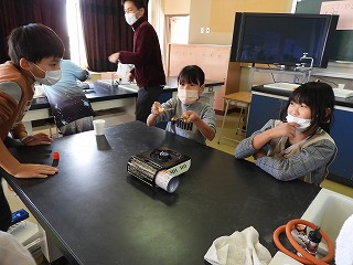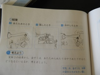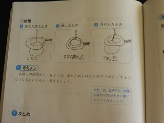 理科の授業は、金属の温度を変えて、体積の変わり方を調べる実験をしています。