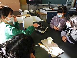 この実験で初めてガスコンロを使うので、安全な使い方を学んで、実験に取り組みました。