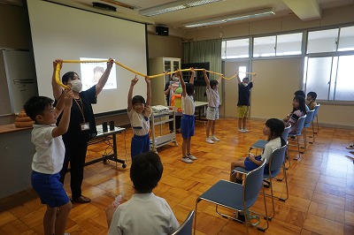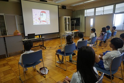 おなか元気のためにはどうすればよいか、クイズに答えたりやアニメを見たりして学習しました。