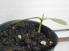 ヘチマの種を植えて、17日がたちました。今のところ、40こ近く植えた種から出てきた芽は4本…