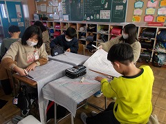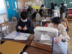 家庭科では、エプロン作りに取り組んでいます。今日は、わきをミシン縫いすることがめあてでした。①三つ折りとアイロン②しつけ③ミシンという工程です。初めてのミシンですが、やり方を覚えて一人で進められるようになりました。エプロンの完成が楽しみですね。