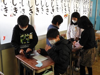 ・給食後の時間にスクリーンを使って問題を出します。