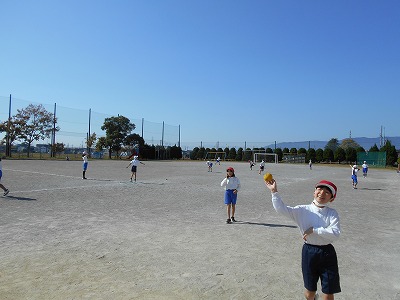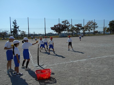 ベースボール型ゲームは初めての児童が多くいたので、基本的なルールを確認したり、ルールを工夫したりしながら行っています。