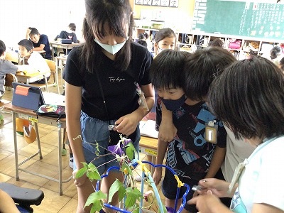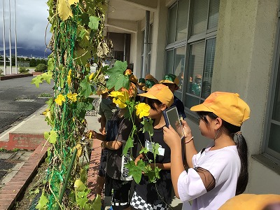 理科の時間には、ヘチマやアサガオの花の作りを観察しています。