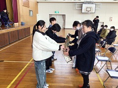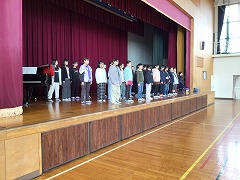 とても寒い中でしたが、交通指導員さん・スクールガードさんに学校にお越しいただき、歌や家庭科の授業で制作したコースターをプレゼントしました。