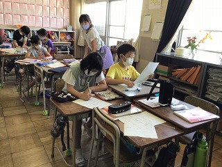 今日も新聞作りを進めました。今日は、校長先生や教頭先生に取材をしに行ったり、アンケートを作ったり、新聞に使う写真を撮りにいったりと、記事を書くための情報集めをしました。