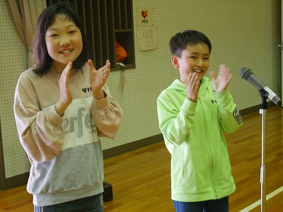 児童会役員の2人は、この日のために練習を繰り返しました。笑顔もバッチリ!