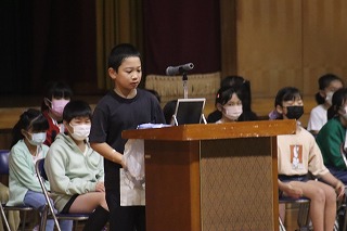 合唱も、とてもよかったと思います。きれいな歌声に聞き入り、心のこもった歌い方に感動しました。こんなにもすてきな二部合唱を4年生でできたことは、本当にすごいことです。