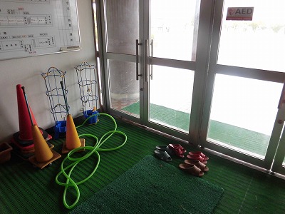 外に置いてある掃除道具などは、校舎内にひなんしています。
