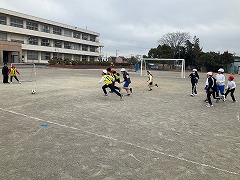 3年生は体育のサッカーの様子を紹介します。パス練習やパスゲーの後に、試合を行いました。試合の中でパスをたくさんつなげてシュートを決める姿が見られました。これまでのタグラグビーやプレルボールの経験を生かして、オフェンス、ディフェンスの役割分けをすることもできていました。