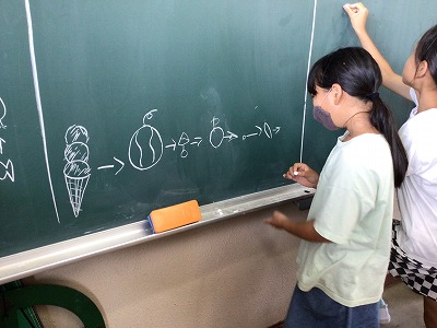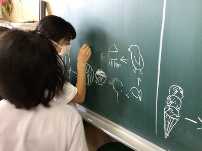 今日は、日誌の答え合わせ、50問テストの2回目、最後に絵しりとりをしました。
