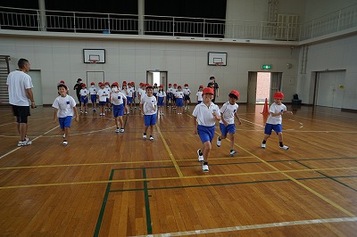 元オリンピック選手の青戸慎司先生をお招きして、かけっこ教室を開催しました。