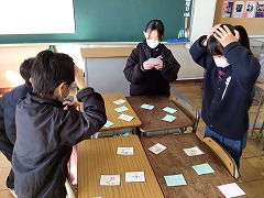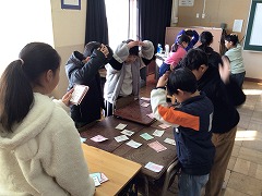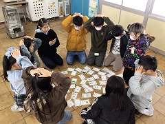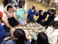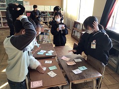 国語の時間には、冬の楽しさを知らせるかるたを作りました。