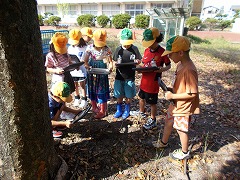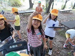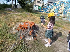 「バッタだー!」「きのこから煙が出てきたよ!」「なんだこれー!?」と楽しそうに見つけていました。