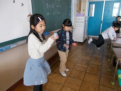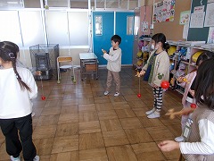 生活科の「ふゆとなかよし」で、けん玉、おはじき、お手玉をしました。