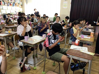 歯の赤染では、下の歯はきれいに磨けている子が多かったのですが、上の歯や歯肉の間に汚れが残っている子もいました。