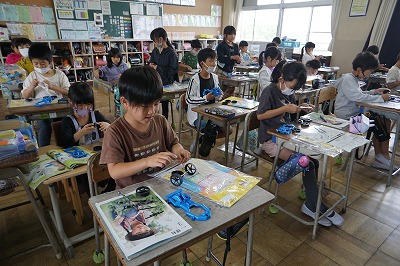 理科では、風やゴムの働きについて学習しています。