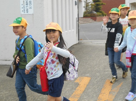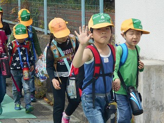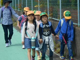 1・2年生手をつないで出発です。