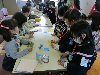 あやとり、にらめっこ、おりがみ、クイズ、とんとんずもうの遊びを用意しました。
