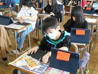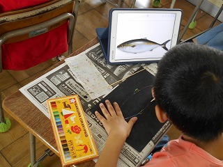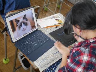 図工の時間は、スクラッチで「生き物の細かいところまで描こう」ということで、iPadで自分の描きたい生き物を見つけ、毛の1本1本、ウロコの1枚1枚まで細かく観察し、集中してがんばっていましたね!