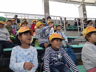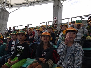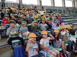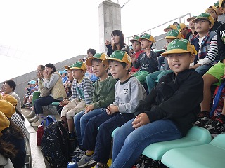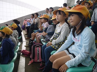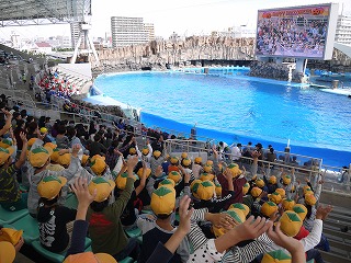 イルカショーの会場では、ほかの小学校や保育園の子がたくさん来ていました。