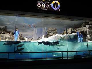 水族館をバックに 『はい、ポーズ!』