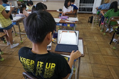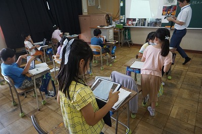 タブレットを使って、考えを共有していました。