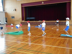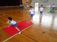 主運動のマット運動にも意欲的に取り組み、技ができるできないに関わらず、挑戦する姿が見られます。今週は、新たに開脚後転と開脚前転に挑戦しました。