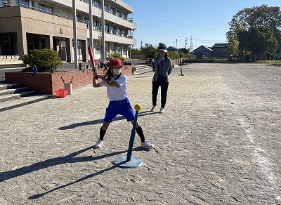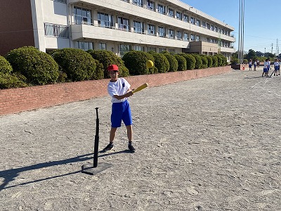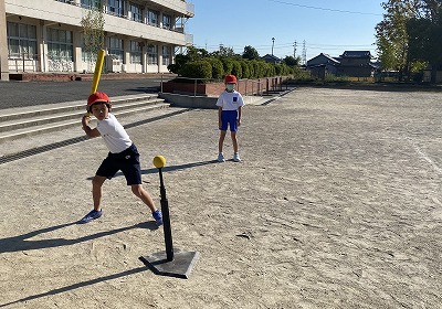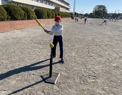 体育の時間には、ティーボールを行っています。