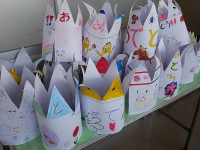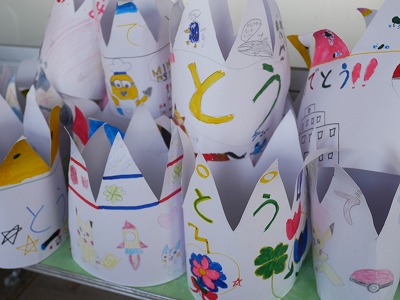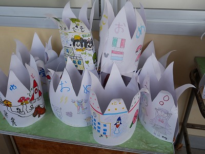 何を描いたら一年生が喜ぶか考えながら作った帽子は、どれも力作です。