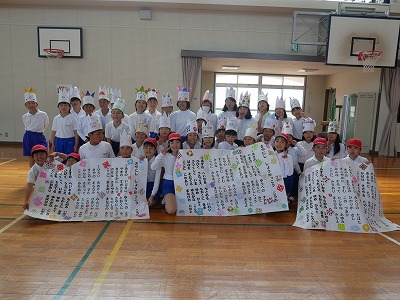 明日の一年生を迎える会を前に、プレゼント渡しの練習をしました。