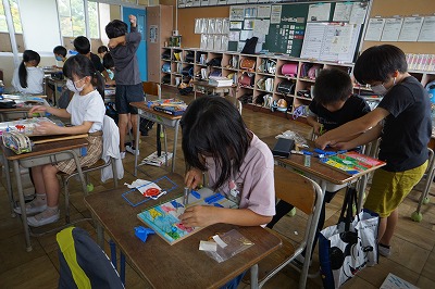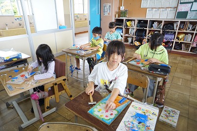 図工では、くぎ打ちゲームを制作しています。