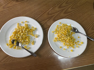 虫がついてしまいうまく育てることができませんでしたが、一人8粒ずつくらい、自分たちで育てたとうもろこしを食べることができました。