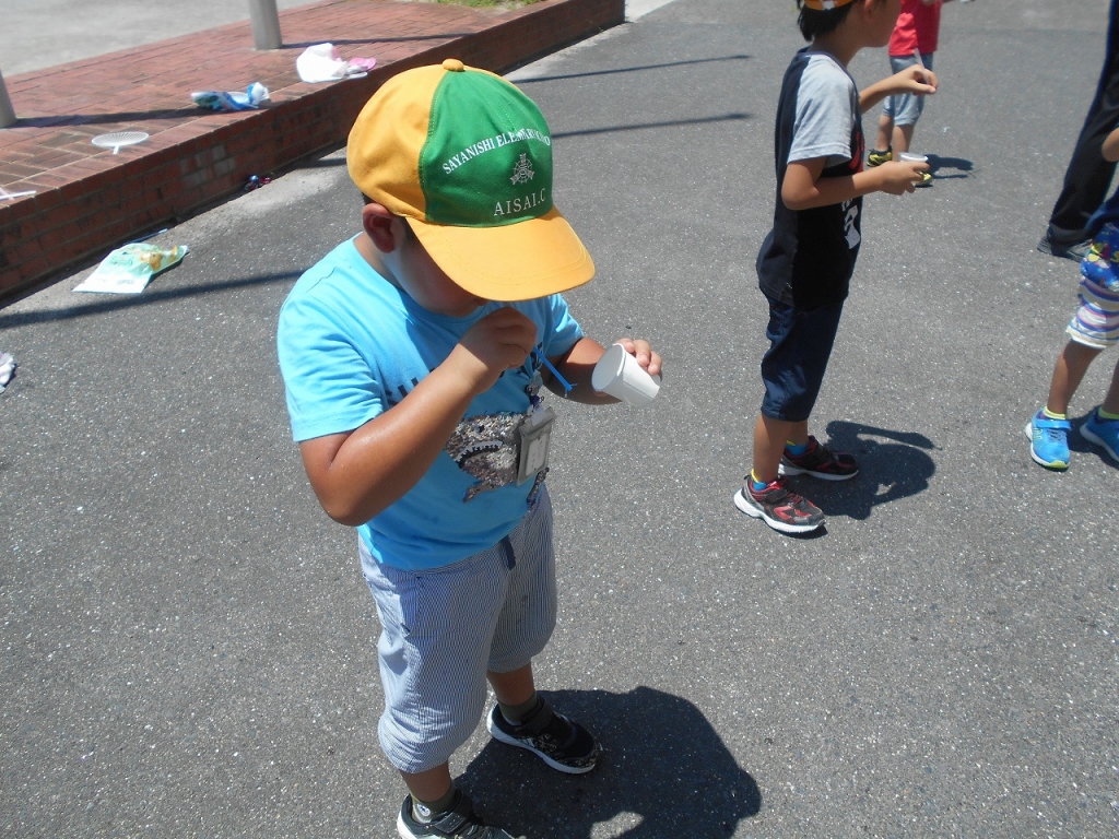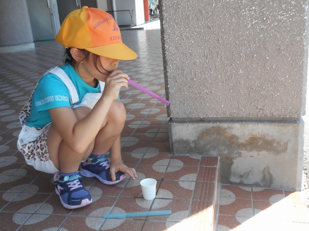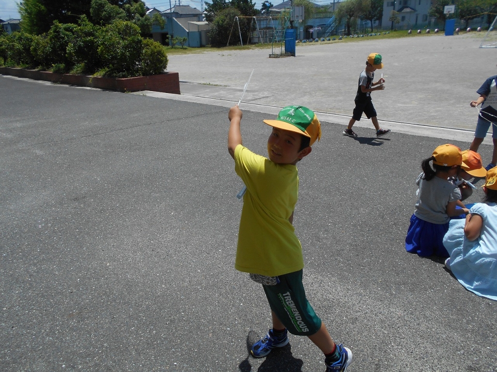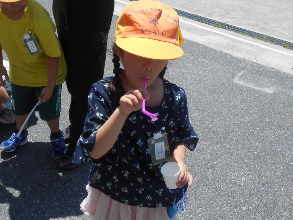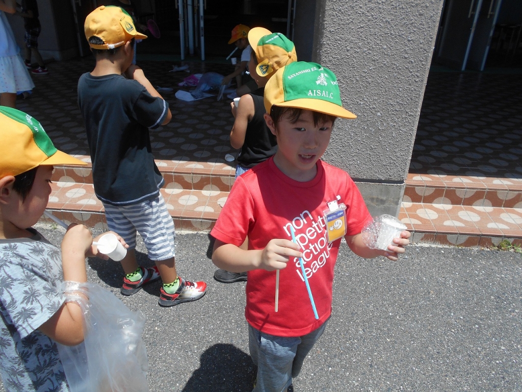 子どもたちは、市販の道具でのしゃぼん玉遊びをしたことがあると言っていました。今日の学習で、身近にある道具を使い、自分なりに考えることで、工夫して遊ぶことができることを学びました。