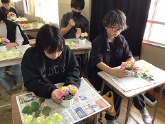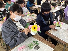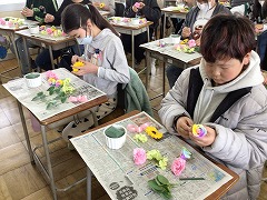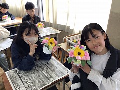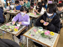 小学校に講師の方をお招きし、「シャボンフラワーアレンジメント」の体験をしました。