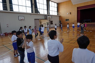 キャンプファイヤーの練習では、ノリノリの子もいれば恥ずかしそうにしている子もいました。