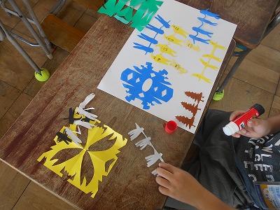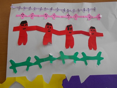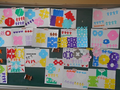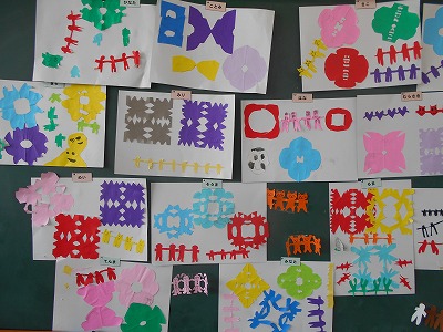 紙の折り方や切り方を工夫して、いろいろな飾りを作りました。