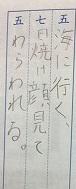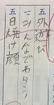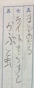 夏休みの日誌の中に『俳句を作ろう』というページがありました。夏の季語の「かぶと虫」「かき氷」「日焼け顔」の3つの中から好きなものを選んで俳句作りに挑戦しました。その中で面白いと思った作品やすごいと思った作品を紹介します。