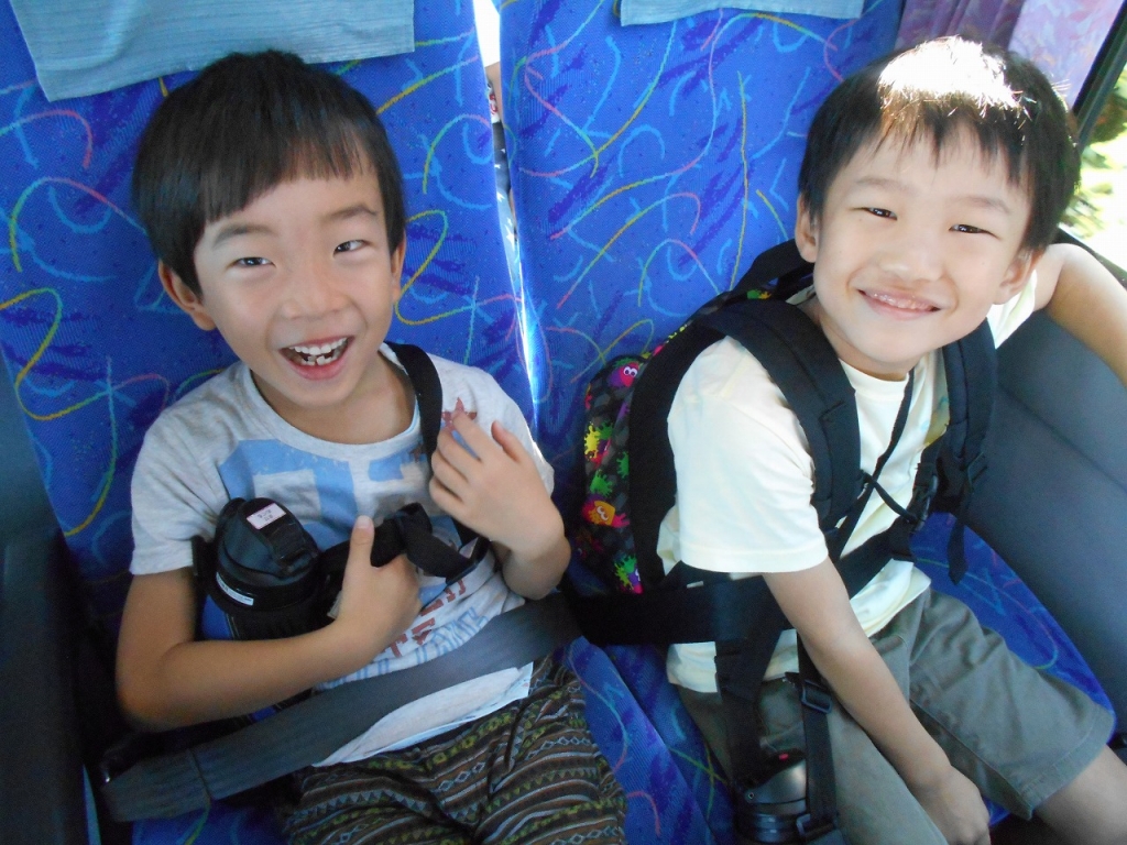 仲間と初めて乗るバスでは、シートベルトを着用し、楽しい時間を過ごしました。