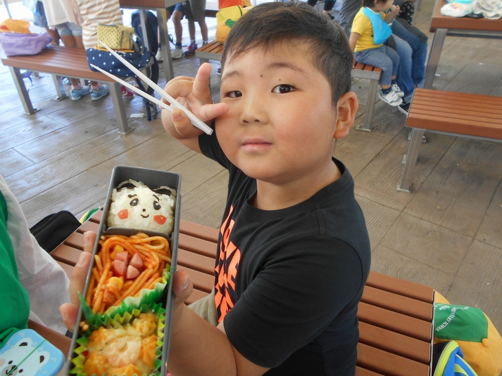 昼食は、お家の方の愛情たっぷりのお弁当を食べました。
