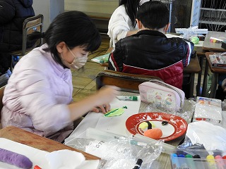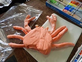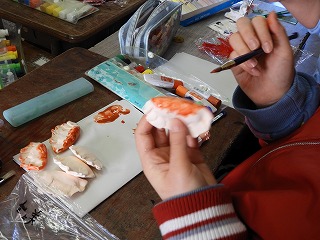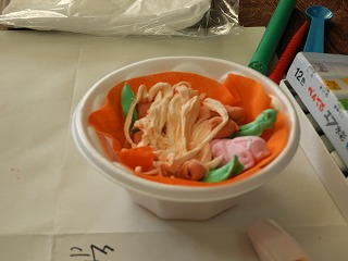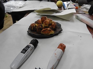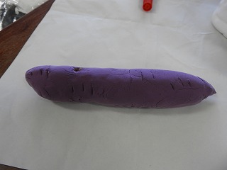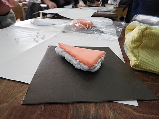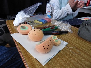 今日は、担当する都道府県の特産品を紙粘土で作りました。前回、「にこちゃん」「わるちゃん」作りで粘土の扱いに慣れているので、てきぱきと進めることができていました。