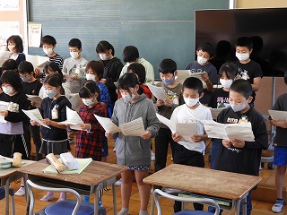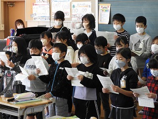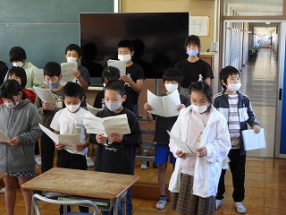 2時間目の音楽で、10歳のつどいの合唱隊形で初めて歌いました。わたしは、ソプラノパートとアルトパートに分かれて歌うのを初めて聞きましたが、音がとれていてハーモニーになっていたのでとても驚きました。まだ本番まで何日もあります。心を込めて歌えるようになると、聞いている人に伝わる合唱になります。さあ、合唱も一歩前進しましたね!