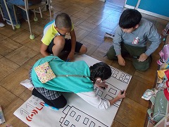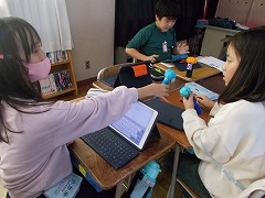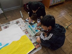 総合では、学習発表会に向けてグループに分かれて制作中です。
