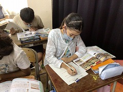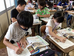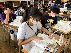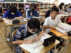 「明治時代は何年から何年まで」や「明治時代から取り入れられた文化」といった基本的なことから、明治村の建物などについて、子どもたちは教科書や資料集、タブレット端末を用いて調べ学習を進めました。