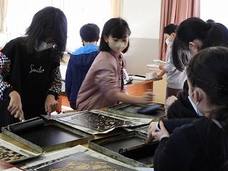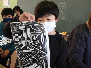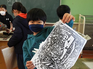 いろいろな種類の彫刻刀を使ったり、いろいろな模様に挑戦したりしたので、一人一人の個性が光る作品になりましたね。