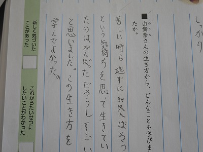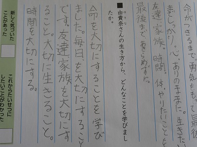 学んでいた小学校4年生の時に書かれたもので、「・・・だから私は命がつかれた